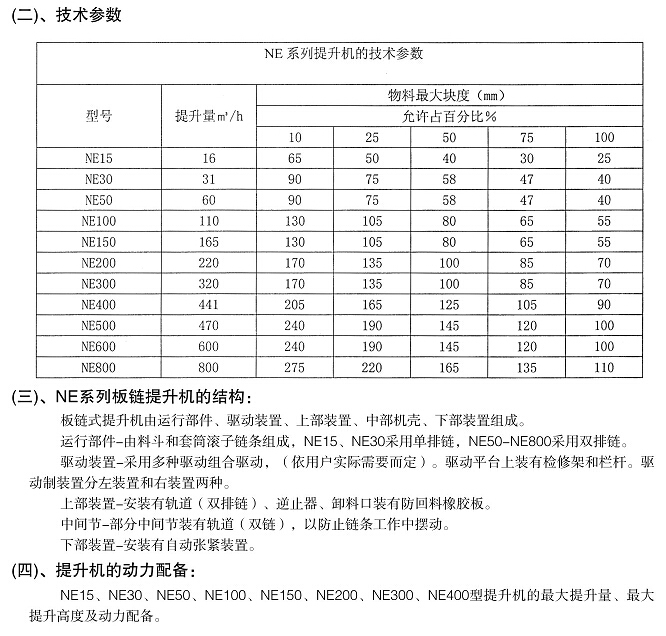 NE15板鏈?zhǔn)蕉肥教嵘龣C(jī)提升量:16m3/h