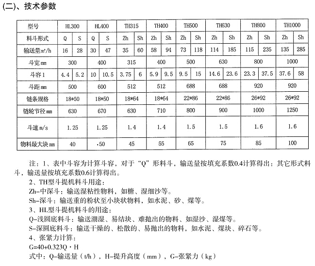 ④TH型斗式提升機(jī)技術(shù)性能見技術(shù)參數(shù)。