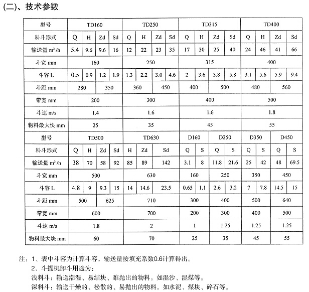 TD250皮帶式斗式提升機適用輸送物料:松散密度ρ<1.5t/m3的粉狀、粒狀、小塊狀的無磨琢性、半磨琢性物料。